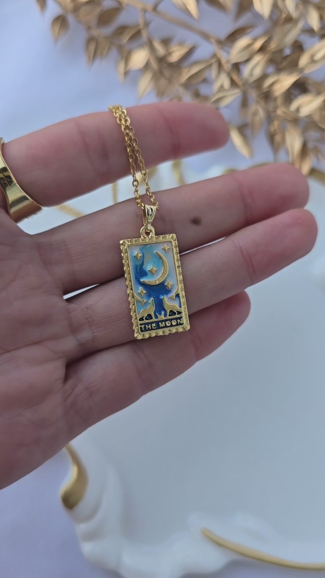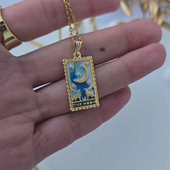 Traumhafte Blue Moon Kette aus Edelstahl. Mit zwei Wölfen, Sternen und Mond.