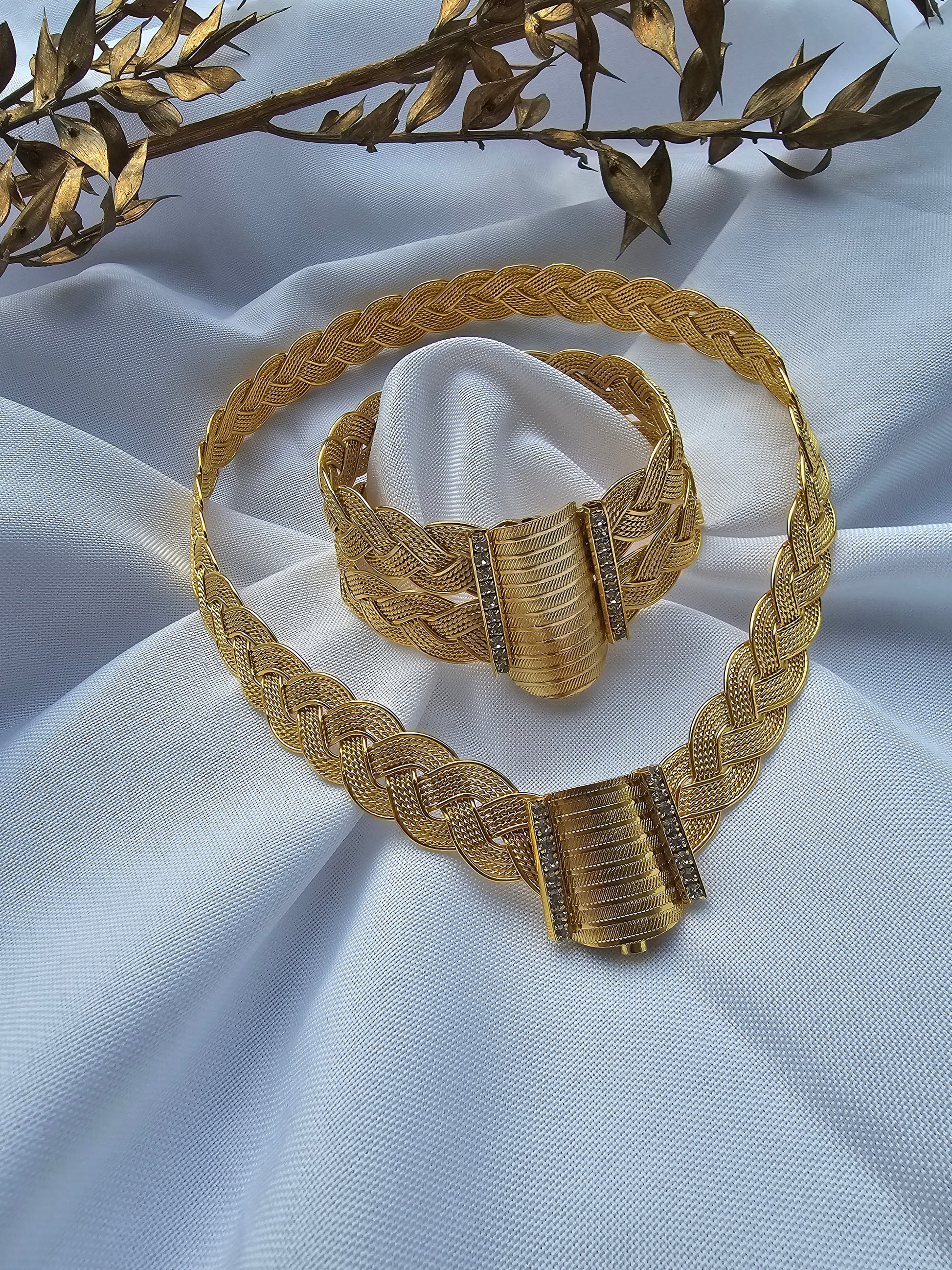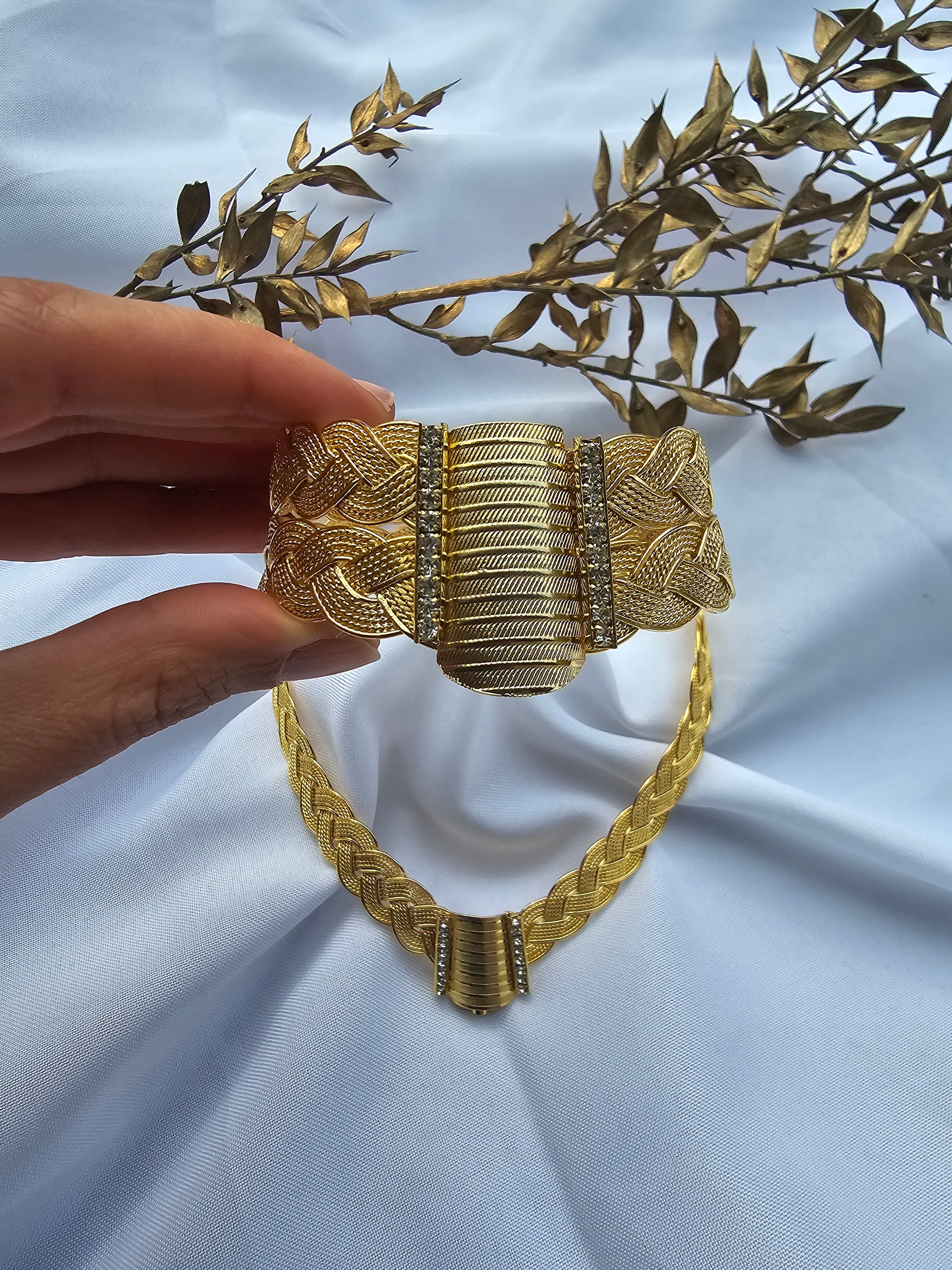 Die Kette ist ungefähr 15x12 cm lang. Armreifen 6,5x5,5 cm.
